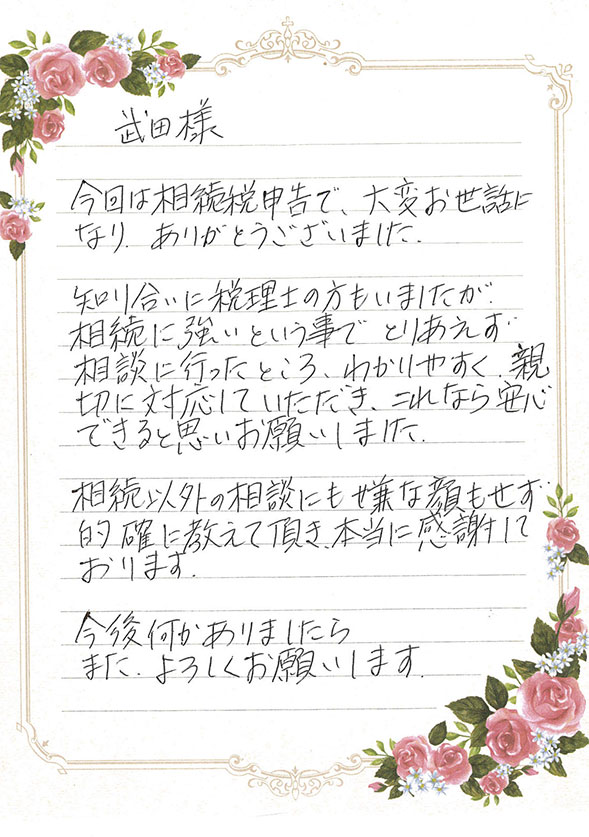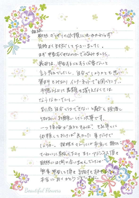 弊社では、お客様に安心して相続をお任せいただけるよう、何よりもお客様とのコミュニケーションを大切にしています。